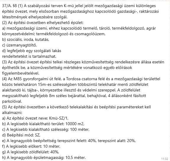 A beépíthetősége a mellékelt helyi építési szabályzat szerint.