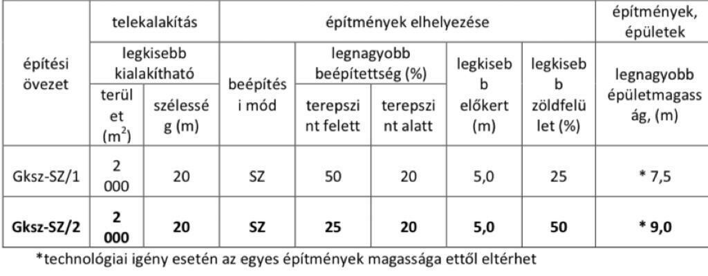 25 %-ban beépíthető, 9 méter építménymagasságig.